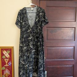 Pact Black Wildflowers Cafe Crepe Wrap Dress — XL$60Portland, OR