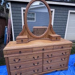 OAK CHEST OF DRAWERS DRESSER 5 DRAWERS WITH VELVET LINED LIFT TOP STORAGE AND MIRROR$275Boring, OR