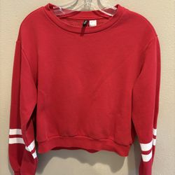 H&M Red Sweatshirt with White Striped Sleeves$10Three Rivers, Oregon