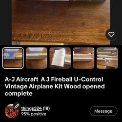 Aj Fireball U-Control Vintage Airplane Kit Wood opened complete Made In Portland$475Redmond, OR