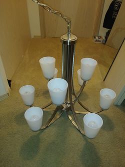 Beautiful like new 9 light chandelier! Nickel finish. Moved and no long have room for it:( 200$ paid almost 500$200Eugene, OR