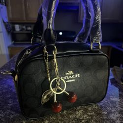 womens Black Coach bag with cherry charm$75Springfield, OR