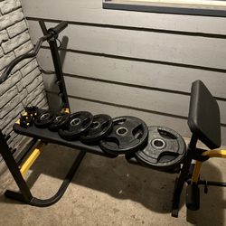 2 inch Curl Bar, Weight Rubber Grip Plates & Benchpress (Option To Buy All Together Or Items Separately)$300Salem, OR