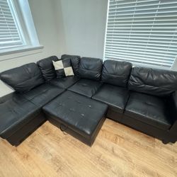 Black Leather Sectional W/ Storage Ottoman$200Salem, OR