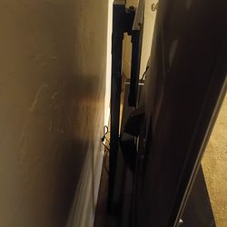 Black Tv Stand With Glass Opening Drawers $30Eugene, OR