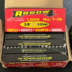 ARROW FASTENER T18 STAPLES. 10 BOXES 10,000 STAPLES$25Vancouver, WA