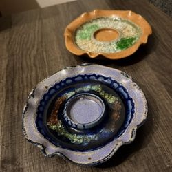 Tea Light Candle / Jewelry Trays / Ash Trays, Colorful Artsy Blue And Tan$18Portland, OR