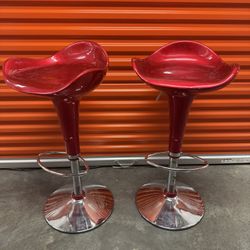 Set of 2 Red Adjustable Swivel Bar Stools Chrome Base Modern$120Portland, OR