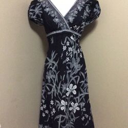 DESIGNED BY VANNY Black Gray Cotton Floral V-neck Shift Dress Designer Sz S-M$11Portland, OR