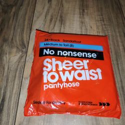 No Nonsense Sheer To Waist Pantyhose In Black Medium To Tall (B). Packaging has some wear from age and storage. Sold as is.