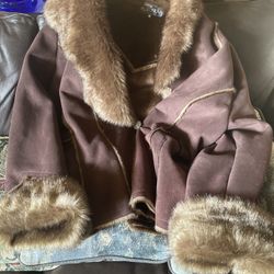 Red Fox Fur Collar Knee Length Dark Brown Leather Wrap Coat$125Vancouver, WA
