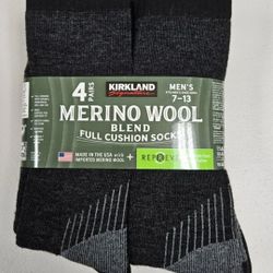 BRAND NEW: 4 PAIRS PACK OF Kirkland Signature Merino Wool Mens 7-13 Outdoor Hiking Trail Socks Full Cushion$25Portland, OR