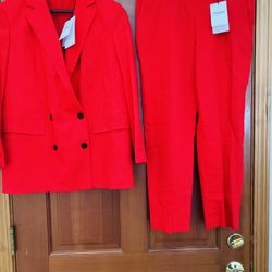 NWT Theory Stretchable Linen Scarlet Pantsuit Sz 8 in Eco Crunch Wash Paid $770$495Beaverton, OR