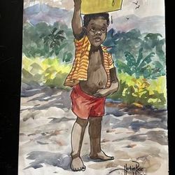 1979 Original Watercolor Jamaican Child Caring Water by Herbie Rose$325Portland, OR