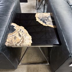 Sale! Black Resin And Petrified Wood Square End Side Table - Singo$599Vancouver, WA