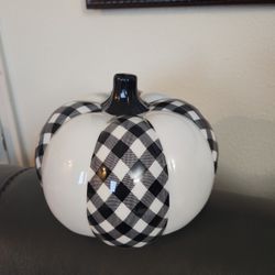 Beautiful Robert Stanley Ceramic White And Black Buffalo Plaid Pumkin $24Portland, OR