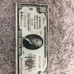 NATIONAL CURRENCY - NEW YORK, N.Y. 1929 - PUBLIC NATIONAL BANK $10.00$100Vancouver, WA
