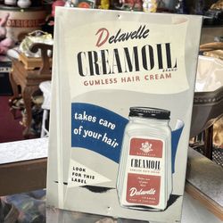 Vintage Delavelle Cream Oil Finless Hair Cream Metal Sign $22Portland, OR