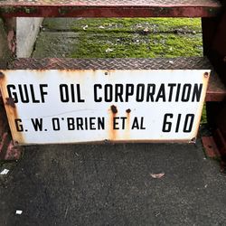 Gulf oil production g w o Brien vintage porcelain sign$300Portland, OR