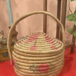Vintage Native American Southwestern Coiled Wicker Basket W/ Lid & Handle $40Portland, OR