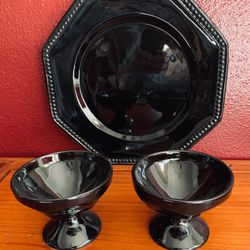Handmade Signed Black Octagon Plate and 2 Black Pedestal Bowl Set, Excellent$15Beaverton, OR