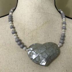 Unique Large Mosaic Mother of Pearl HEART Pendant Gray Bead Choker Necklace$20Portland, OR
