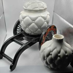 The image displays a set of white ceramic decorative items, featuring a distinctive quilted or tufted texture. $40Hillsboro, OR