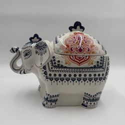Ceramic Elephant Trinket Box Blue White Boho Jewelry Storage Figurine$20Portland, OR