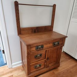 Antique Victorian Oak Washstand with Towel Bar with Decorative Handles $225Portland, OR