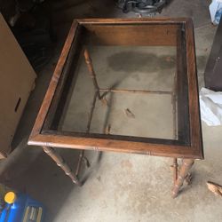 Beautiful Antique Solid Fumed Oak Side Table with Glass Top $75Portland, OR