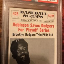1961 NU - CARD SCOOPS JACKIE ROBINSON SAVES DODGERS FOR PLAYOFFS #428 PSA "8"$199West Linn, OR