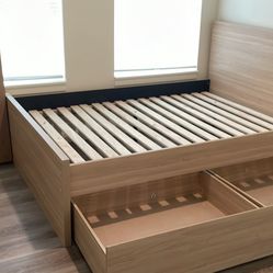 Dark Oak Queen Bed Frame w/ Built-In Storage $175Portland, OR