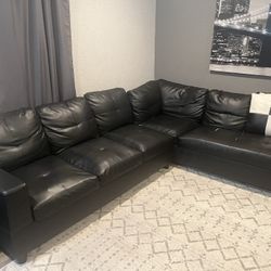 Black Leather Sectional Couch And Ottoman$700Battle Ground, WA