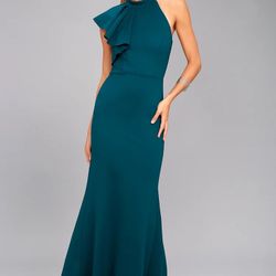 Dark Teal Satin Lace-Up Maxi Dress Lulus - size Medium - BNWT$40Portland, OR
