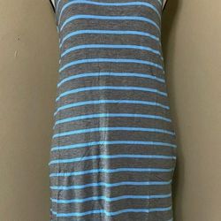 OCEAN BLUE Neon Blue Gray Striped/Racerback Sleeveless Tank Dress Lace Back sz L$15Portland, OR