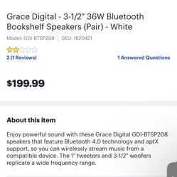 Grace Digital - 3-1/2" 36W Bluetooth Bookshelf Speakers Pair White$125Portland, OR