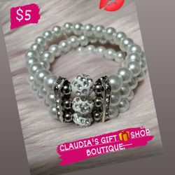 Light Green Iridescent Faux Pearl Bead Bracelet With Center Crystal Styled Pendant $11Vancouver, WA