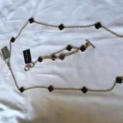 Black/White Matte Gold Clover Necklace & Bracelet Set$28Boring, OR