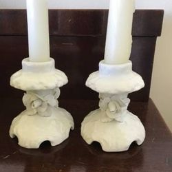Vintage White Porcelain Small Candleholders with Applied Rose Flowers$20Portland, OR