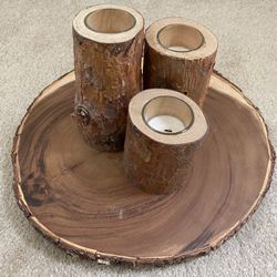 14" Rustic Round Wood Base Plaque Slice w/ 3 Piece Log Candle Holder$45Tigard, OR