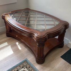 Wooden Coffee Table With Curved Frame, Glass Top $50Gresham, OR