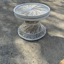 70s Vintage Round Wicker Coffee Side Table Bubble Glass Top Just Needs Paint$75Corbett, OR