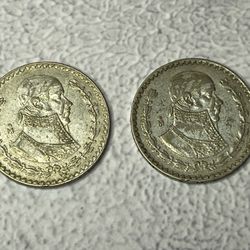 Pair 1960 & 1961 Silver Un Peso$20Camas, WA