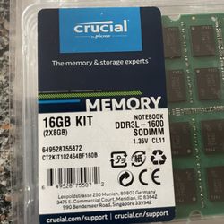 6 Crucial Memory/RAM - 16 GB Kit (2x8GB) / CT2KIT102464BF160B$300Beaverton, OR