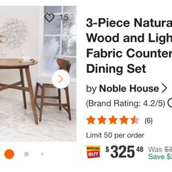 3-Piece Natural Walnut Wood and Light Beige Fabric Counter Height Dining Set$120Portland, OR