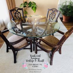 Vintage Broyhill Rattan Dining Set with Silk Upholstered Chairs and Glass Table Top$450Canby, OR