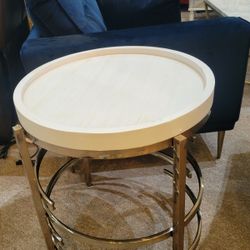 Round End Table Vintage White top and Goldtone Finish$150Portland, OR