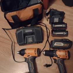 Ridgid drill and driver kit w/0 x2 2ah batteries and x1 5ah battery and x1fast charger$150Portland, OR