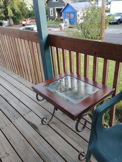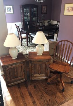 Two oak end tables solid oak chair and two lamps.$140West Linn, OR