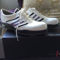 Ecco Women's golf shoes w arch support Size 39 never worn on golf coarse, basically new. Leather, white purple and black. Have matching set of club$35Portland, OR
